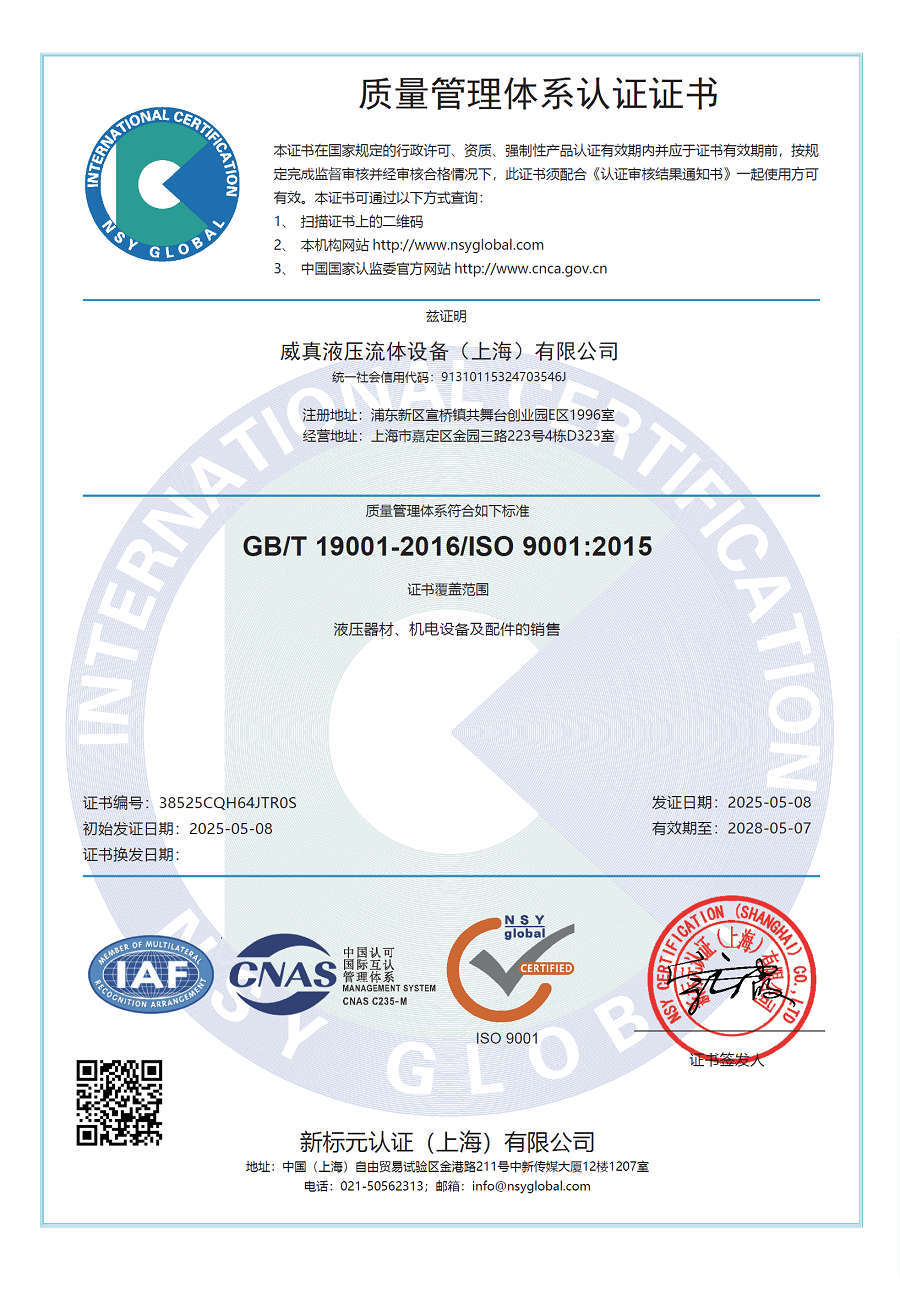 威真液壓流體設(shè)備(上海)有限公司是專業(yè)生產(chǎn)和經(jīng)營各種液壓膠管總成、液壓接頭、不銹鋼流體連接件、精密鋼管、球閥、法蘭及其它液壓附件的企業(yè),公司自創(chuàng)立以來一直致力為客戶提供完整的液壓、流體解決方案、努力打造“華東最大流體連接件超市”;始終堅(jiān)持“客戶至上、技術(shù)爭先、求真務(wù)實(shí)、揚(yáng)我國威”的企業(yè)宗旨。同時(shí)我們還是RYCO(澳大利亞萊科)品牌液壓軟管的授權(quán)代理商。我公司總部位于國際金融中心—上海,多年的液壓管件研發(fā)與生產(chǎn)經(jīng)驗(yàn)、專業(yè)的技術(shù)與服務(wù)隊(duì)伍為威真液壓打造行業(yè)一流企業(yè)提供了有力保障。目前我們已經(jīng)通過ISO 9001:2015/ GB/T 19001-2016 質(zhì)量體系認(rèn)證,而我們的產(chǎn)品全部按照DIN2353、ISO8434、SAEJ514等國際質(zhì)量體系標(biāo)準(zhǔn)進(jìn)行設(shè)計(jì)、生產(chǎn)、檢測(cè)。我們重視產(chǎn)品質(zhì)量,所以威真液壓今天已經(jīng)成為業(yè)界成長飛快的公司,盡管如此,我們?nèi)砸砸涣鞯钠焚|(zhì)和良好的交貨能力為客戶提供細(xì)致入微的服務(wù)。